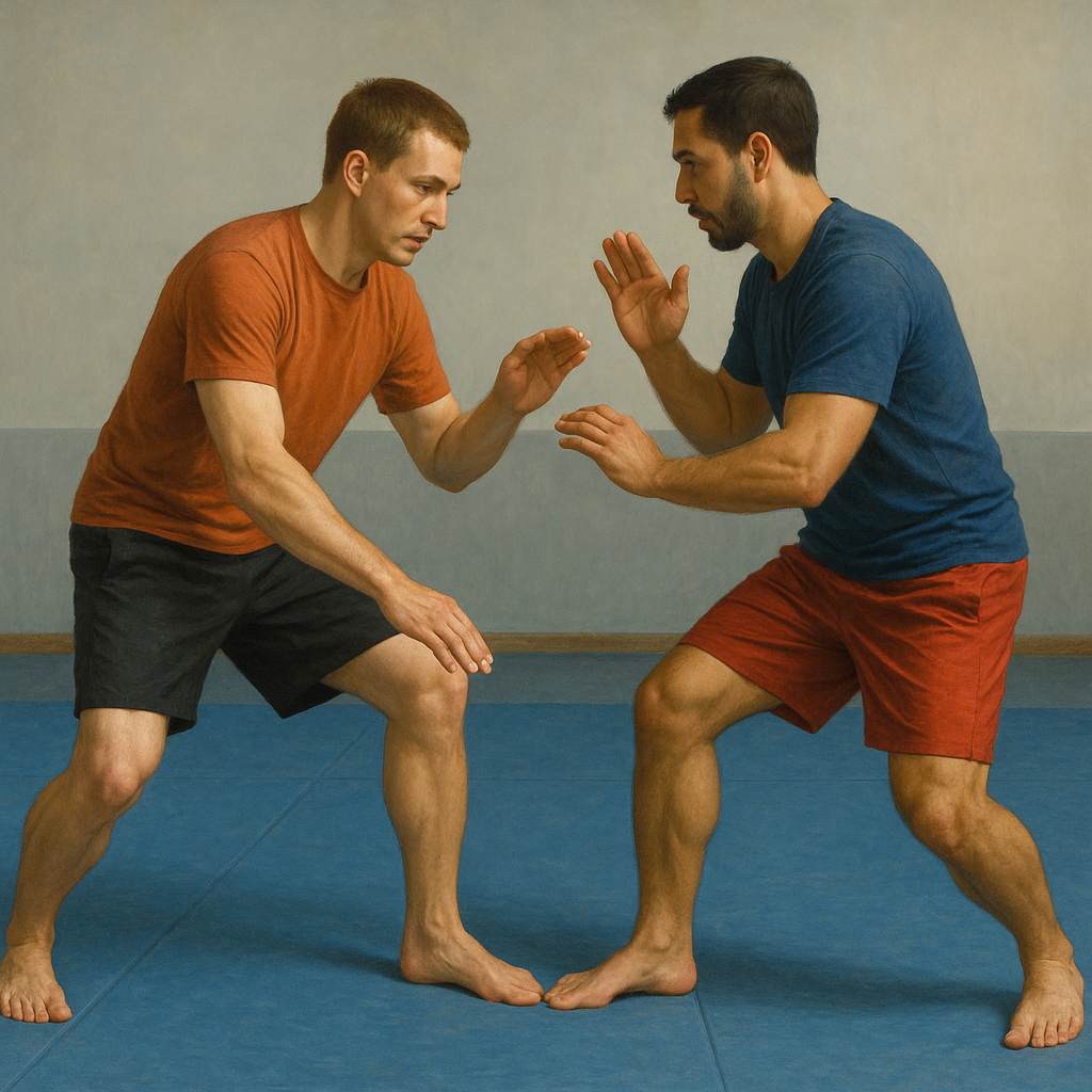 Toucher soit le genou, soit l’épaule de l’adversaire tout en évitant d’être touché.